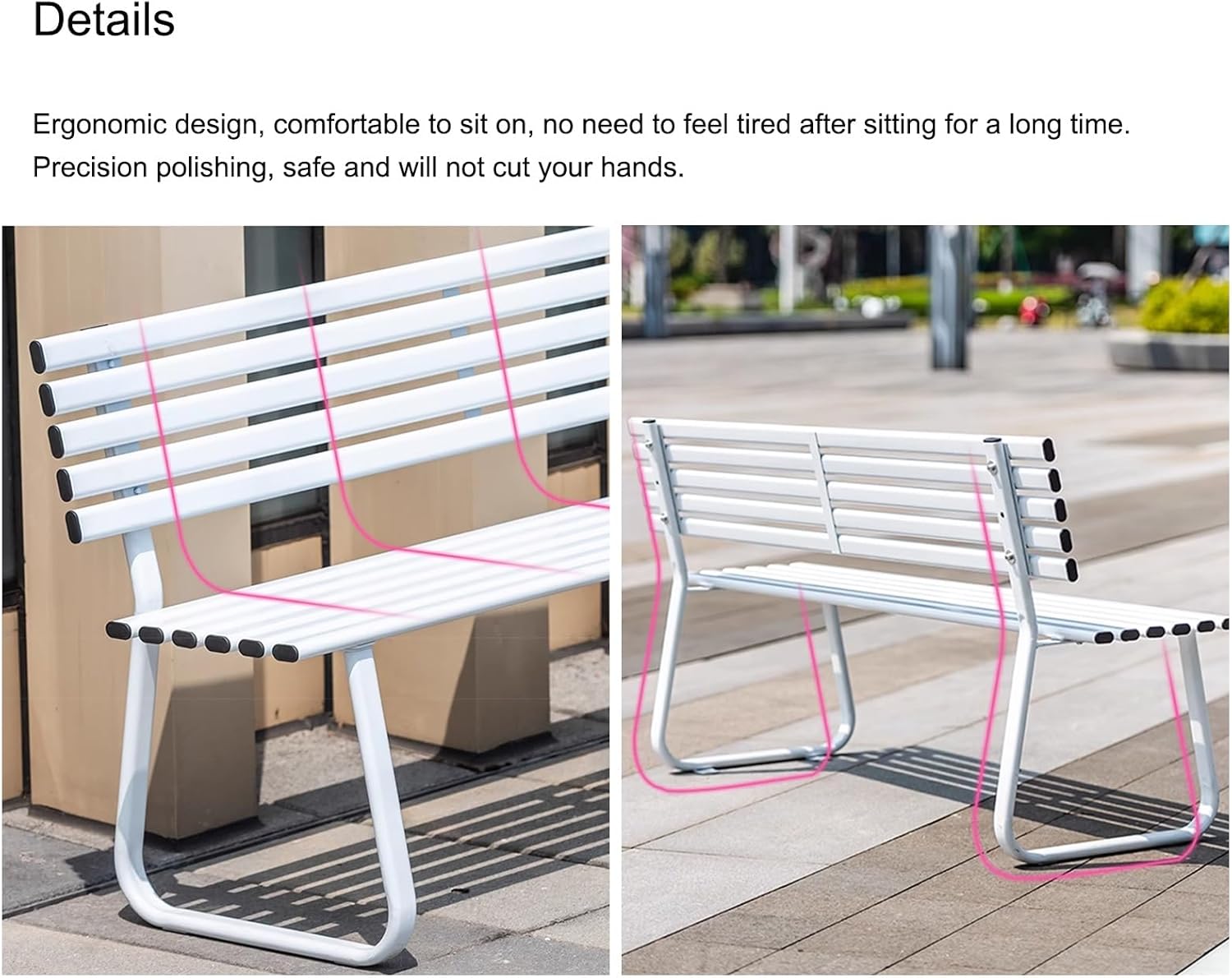 【Product Description】-This bench will add comfort and warmth to your front porch or backyard, become a beautiful decoration in the courtyard, and provide a place for your family to rest.【Product Features】-This bench adopts a sturdy steel frame structure to ensure its durability and stability, even in the ever-changing outdoor climate conditions.-The carefully designed seat and backrest adopt ergonomic principles, which can remain comfortable even for long periods of sitting, adding infinite comfort to your outdoor leisure time.-Easy to clean and maintain, the galvanized steel pipe material is not only beautiful, but also effectively resists the harsh outdoor environment, keeping the furniture as new for a long time.-Whether it is a sunny afternoon or a starry night, this bench is your ideal choice for enjoying outdoor life, making every outdoor time full of fun and comfort.【Product Information】-Name: Outdoor Garden Bench/Park Bench-Material: Galvanized Steel-Color: White/Orange/Green/Blue/Pink-Number of Seats: Can accommodate up to 2-3 people-Dimensions: 120*45*74cm/47.2*17.7*29.1in-Seat Height: 41cm/16.1in-Load Capacity: 1100lbs
