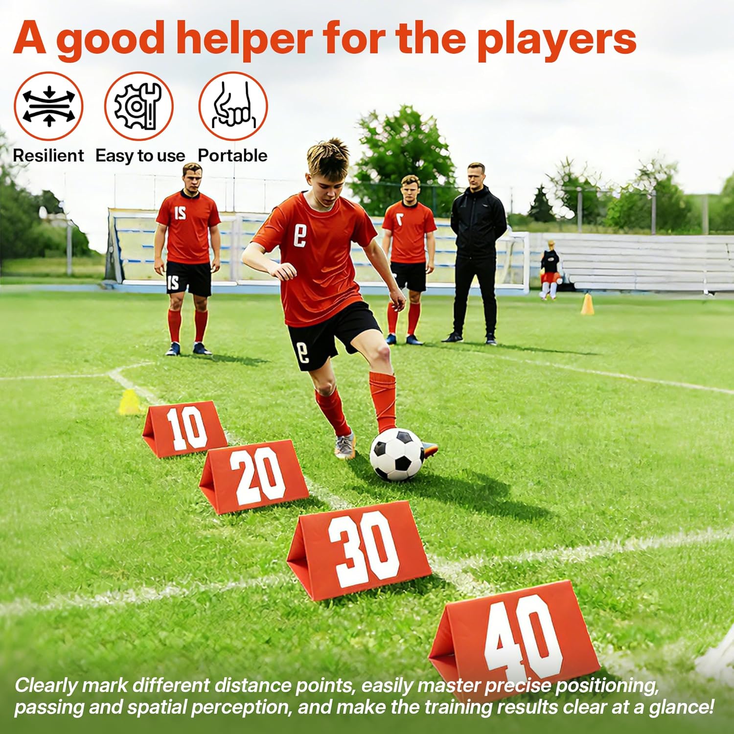Elevate your sports training game with our all-in-one Football Yard Markers Set, designed to meet every demand of football practice and beyond! This comprehensive set includes 11 high-quality field markers with versatile configurations: 2 markers each for G, 10, 20, 30, 40 yard markings, plus 1 dedicated 50-yard marker—covering all essential distance positions you need for targeted drills. Comes with a portable storage pouch that keeps all markers neatly organized, making it effortless to carry to the training field, backyard, or any outdoor location. Boasting a high-visibility design, the markers feature a striking orange appearance paired with clear white numeric markings, ensuring exceptional visibility even from a distance. You can swiftly identify marker positions and distance information at a glance, keeping training sessions seamless and precise without any delays or confusion. Perfect for football training, these yard markers excel at marking specific distances to assist players in honing precise positioning, controlling passing distances, and mastering various tactical drills. But their utility doesn’t stop there—they’re also ideal for rugby, baseball, athletics training, and even children’s sports initiation, making them a versatile addition to any coach’s or sports enthusiast’s gear collection.